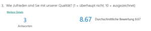 Als Beispiel habe ich nachfolgend eine Mehrfachauswahl sowie die Qualitätszufriedenheitsfrage aufgeführt: