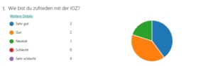 Für jede Frage wird danach eine Zusammenfassung angezeigt. Je nach Fragetyp gibt es eine grafische Auswertung oder auch nicht. Zudem ist es möglich, jede eingegebene Antwort separat zu betrachten.