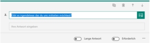 Bei Text kann dem Umfrageteilnehmer die Möglichkeit gegeben werden, in Freitext-Format zu antworten. Dieser Fragetyp ist vor allem für offene Fragen und Begründungen geeignet.